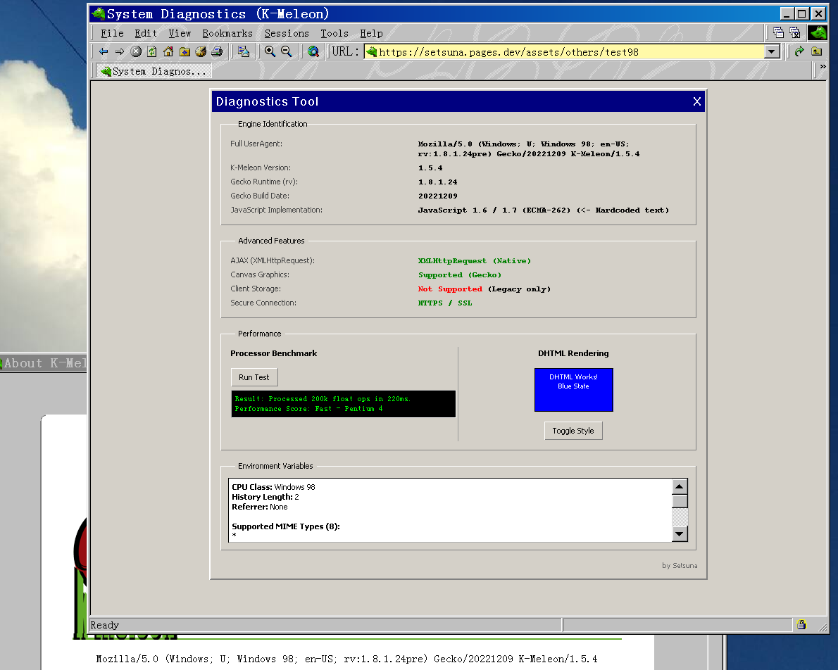 最近用 HTML4 和 CSS 复刻了一个 Windows 98 适用的 System Diagnostics 工具界面(点击这里访问该测试页面)。代码写完之后,但在浏览器中首次加载页面时,遇到了一个问题。